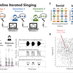 We just published a new paper in the journal Current Biology, entitled "Large-scale iterated singing experiments reveal oral transmission mechanisms underlying music evolution". This was a fun project where we 'evolved' melodies in massive online experiments, getting participants to vocally imitate melodies from each other in long transmission chai…